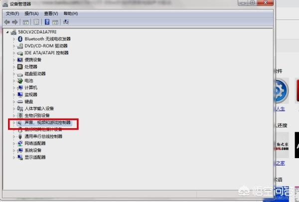 2、进入到设备管理器的页面,找到“声音、视频和游戏控制器”选项,双击查看声卡驱动。