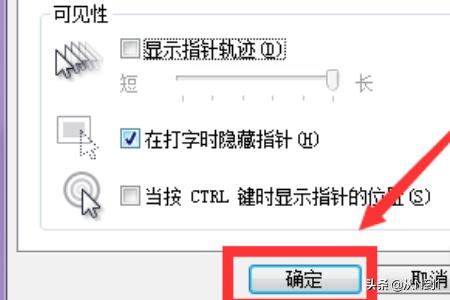 7、移动鼠标至‘显示指针轨迹’前的小方框,选择你想要的鼠标轨迹样式,最后单击确定即可。