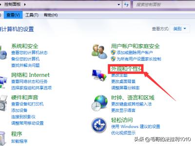 2.进入控制面板的界面之后,就会看到以下类别选项,找到外观和个性化之后,移动鼠标至此,然后单击。具体操作如下所示: