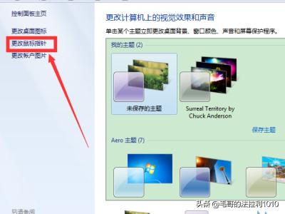 4.进入以下界面后会发现在界面的左上角有一个更改鼠标指针的类别选项。接着按照以下操作,单击更改鼠标指针。
