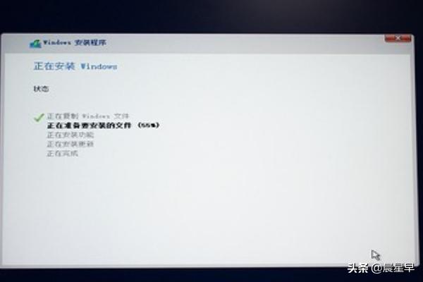6、电脑会自动将U盘上的系统安装文件拷贝到硬盘上,开始系统文件的写入,Win 10安装的主要过程正式开始。