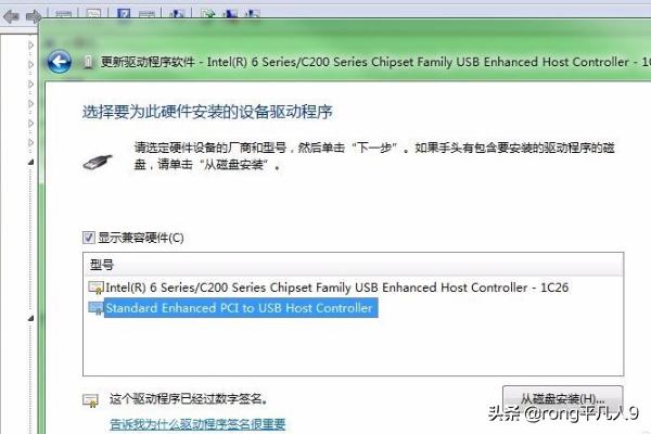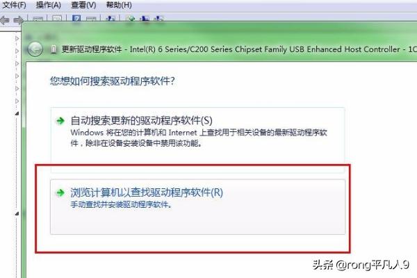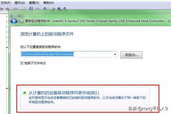 6、在通用串行选项下边都会有intel开头的选项,有些时候也需要把这里驱动程序更改一下,直接右击更新驱动程序,然后选择浏览计算机查找选项,接着选择从计算机的设备列表选择,接着选择standatd开头的选项,然后就更新了驱动程序。