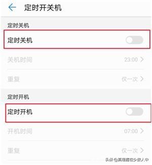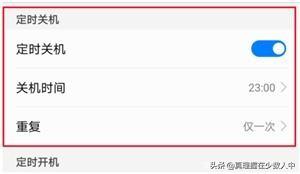 当你勾选定时关机按钮后(显示为蓝色则为成功选择该项目),你可以设置时间和频率,在这里我们设置为23:00和仅一次。那么你的手机在晚上23:00的时候就会自动关机,但是之后不会再出现自动关机,因为你至设置了仅一次。