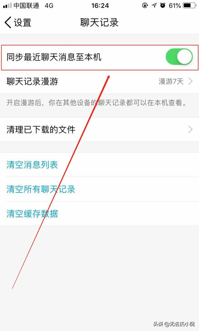 第五步:然后根据下图所示打开这个选项即可将聊天记录同步到手机上!