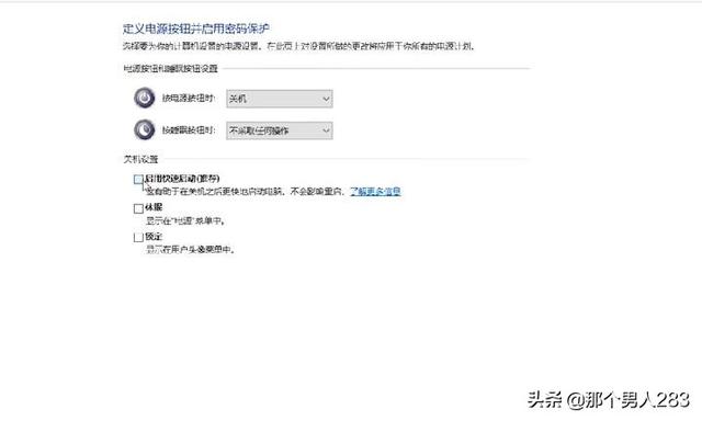 3、在“系统设置”页面,点击“更改当前不可用的设置”选项,将“关机设置”下的“启用快速启动”按钮勾选即可