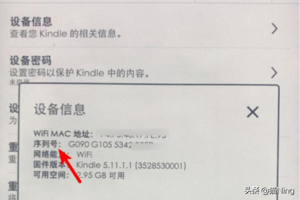3、进入后,就可以看到自己kindle设备的型号和序列号的信息。
