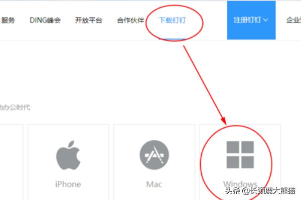 3、点击进入对应的网址后,点击【下载钉钉】,选择对应的版本,这里是下载windows版本。