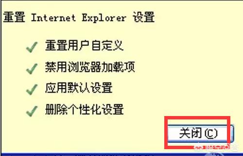 6、此时,系统开始重置IE浏览器的设置,稍等数秒,重置完成点击关闭以后,重新打开浏览器即可。