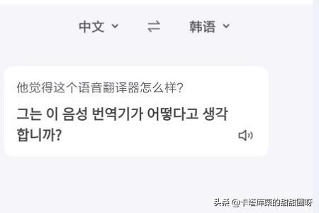 4、韩语翻译结果页面,翻译结果会在语音播放韩语的同时出现一个带有中韩文字的文本框,而在文本框中有一个喇叭按钮,点击可以进行重复的语音播放。