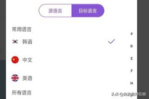 2、选择语种,源语种选择中文,目标语种选择韩语