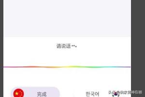 3、开始进入翻译页面,点击左下角的中文按钮,进入录音页面说出中文,录音完成后点击完成按钮,开始进入中文翻译韩语页面。