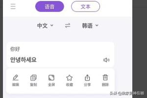 5、翻译完成后,翻译的内容会出现在APP的页面内,我们可以对翻译的内容进行“编辑,复制,全屏,收藏,分享,删除”等操作。