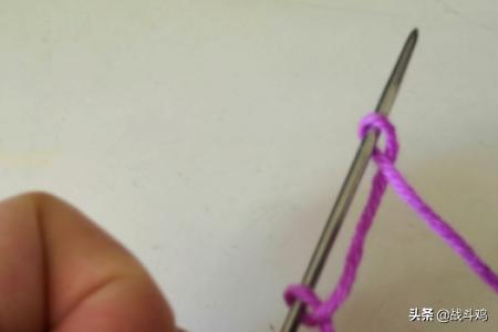 2、然后将毛线针从上图当中的一个线圈里面穿进去,并将线圈从手指头上面滑下,见下图展示。